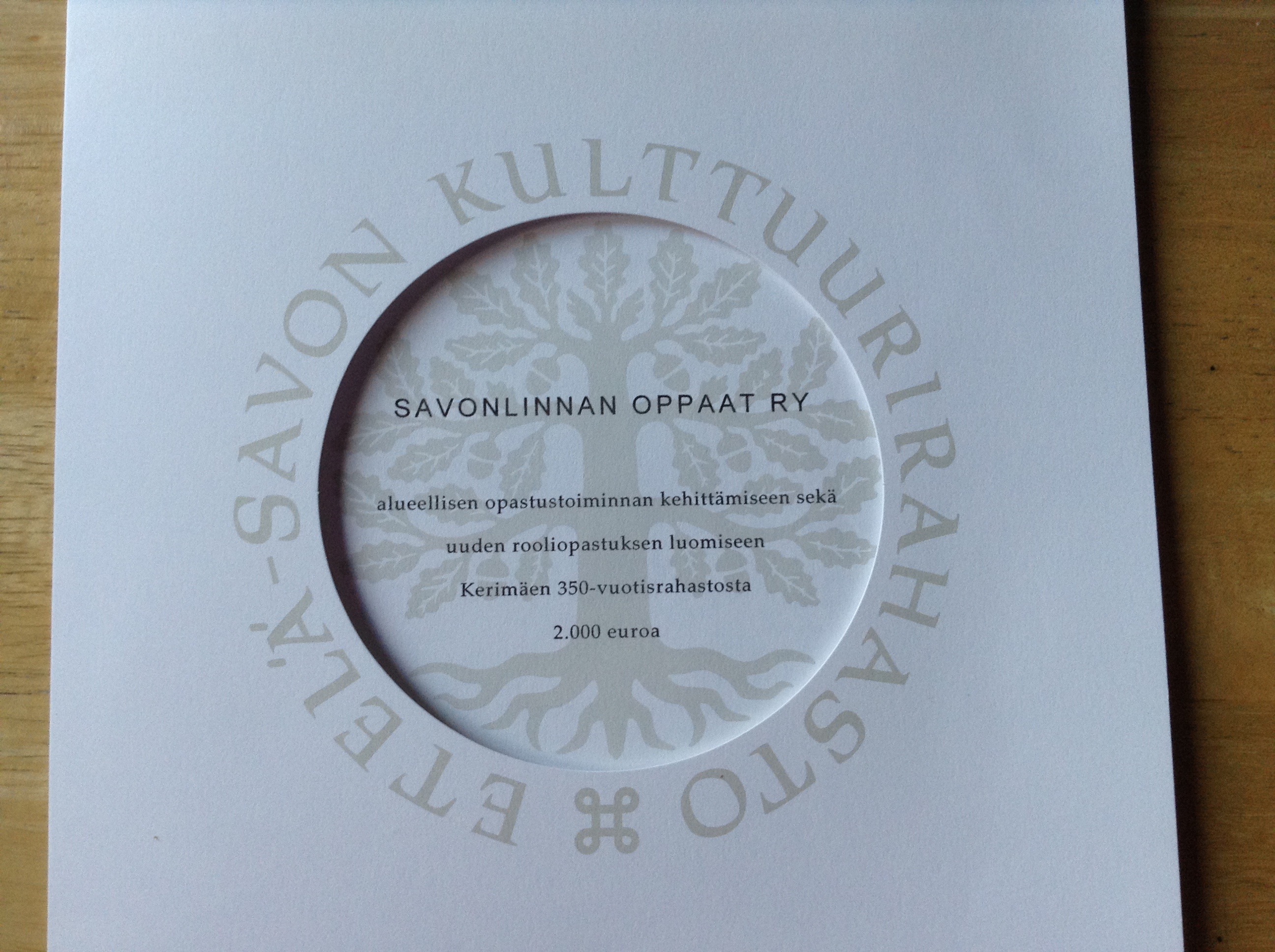 Suomen kulttuurirahaston Etelä-Savon rahasto on myöntänyt Savonlinnan oppaat ry:lle apurahan alueellisen opastustoiminnan kehittämiseen sekä uuden rooliopastuksen luomiseen.