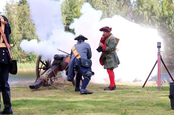 12.00 Tykillä ampuminen, historiallisten aseiden esittelyä ja tykkimiesten värväystä Saimaan järvilaivaston tykistöön, Tykkipursiyhdistys ry