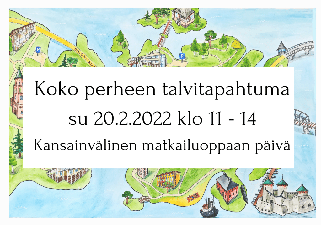 Kansainvälistä matkailuoppaan päivää vietetään taas helmikuussa. Tule mukaan juhlistamaan päivää Savonlinnan oppaiden kanssa sunnuntaina 20.2.2022 klo 11 – 14 Talvimaahan, Savonlinnan torille!